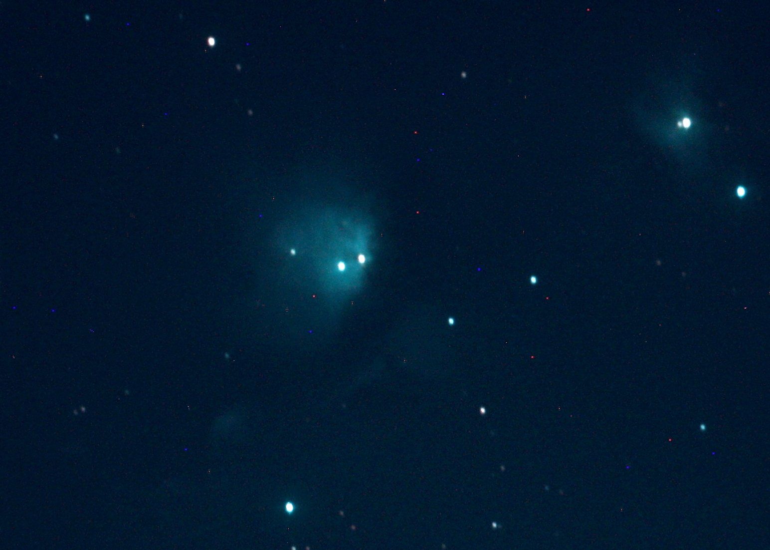 Messier 78 [3]. It is easy to find, but in a small telescope it looks like two fairly bright but small blobs, like a cosmic colon sign.