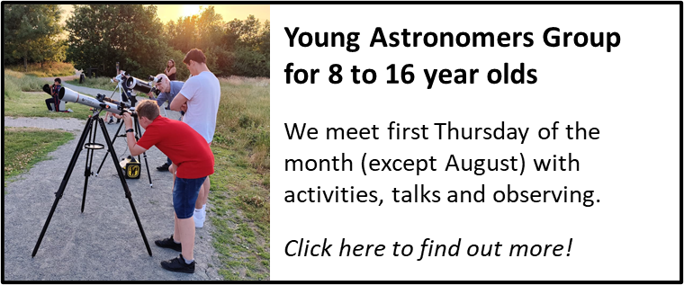 Our YA Group is for children, aged 8-16, interested in space and astronomy. We hold a wide range of talks and activities (see photo on the right), with opportunities for stargazing.