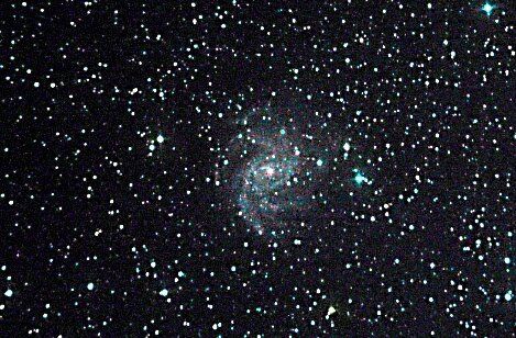 NGC 6946 is a face-on intermediate spiral galaxy with a small bright nucleus, whose location in the sky straddles the boundary between the northern constellations of Cepheus and Cygnus. Its distance from Earth is about 22.5 million light-years or 6.8 megaparsecs, similar to the distance of M101 (NGC 5457) in the constellation Ursa Major. Both were once considered to be part of the Local Group. but are now known to be among the dozen bright spiral galaxies near the Milky Way but beyond the confines of the Local Group. NGC 6946 lies within the Virgo Supercluster.