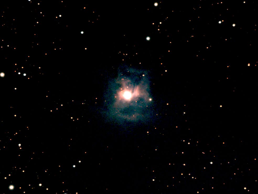 The Iris Nebula, also known as NGC 7023 and Caldwell 4, is a bright reflection nebula and Caldwell object in the constellation Cepheus. NGC 7023 is actually the cluster within the nebula, LBN 487, and the nebula is lit by a magnitude +7 star, SAO 19158. It shines at magnitude +6.8. It is located near the Mira-type variable star T Cephei, and near the bright magnitude +3.23 variable star Beta Cephei (Alphirk). It lies 1,300 light-years away and is six light-years across.