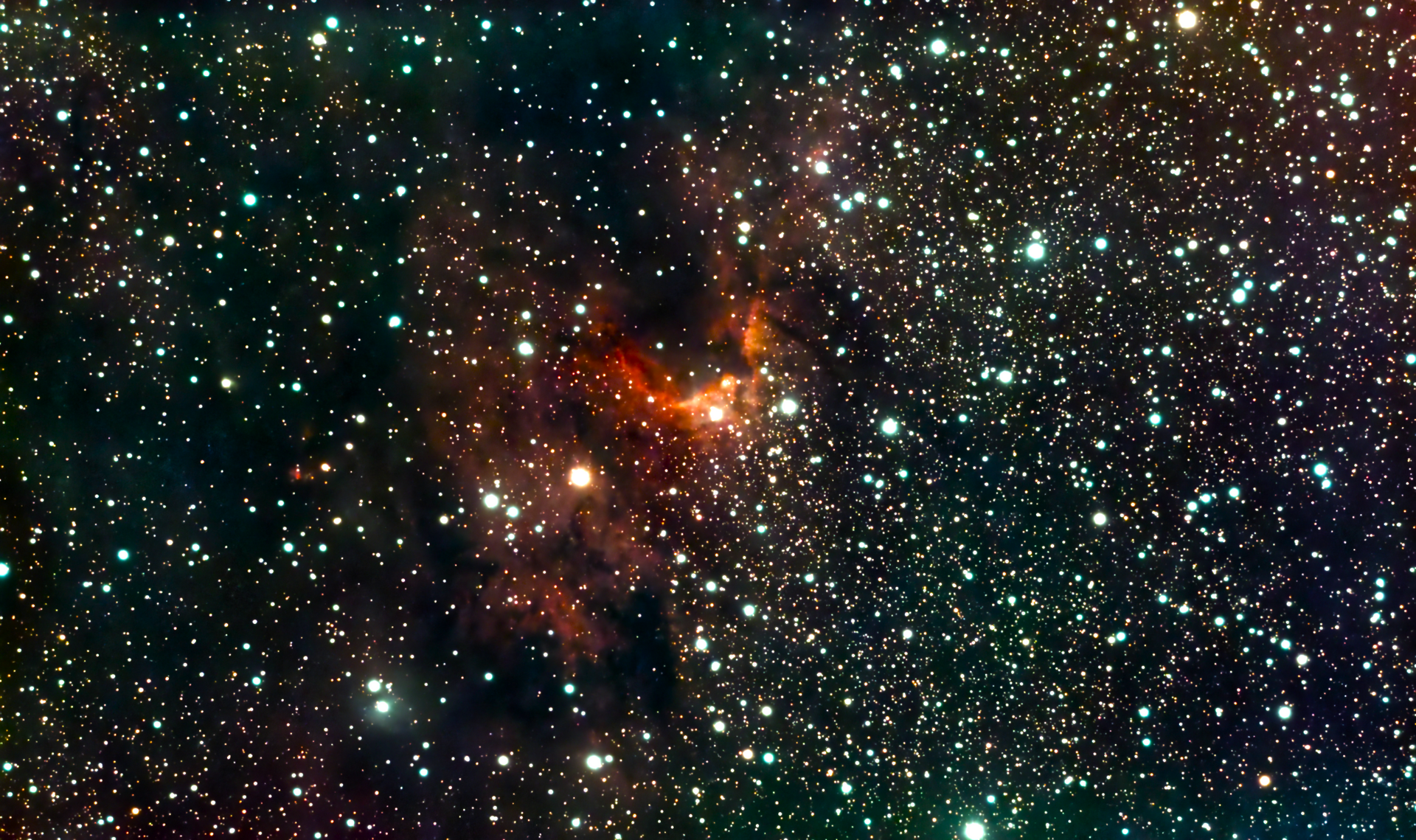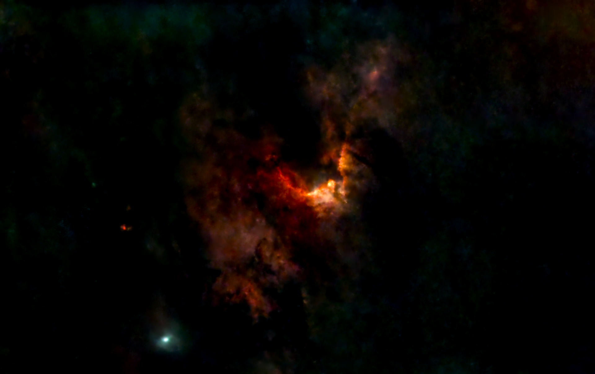 Sh2-155 (also designated Sharpless 155 or S155) is a diffuse nebula in the constellation Cepheus, within a larger nebula complex containing emission, reflection, and dark nebulosity. It is widely known as the Cave Nebula, though that name was applied earlier to Ced 201, a different nebula in Cepheus. Sh2-155 is an ionized H II region with ongoing star formation activity, at an estimated distance of 725 parsecs (2400 light-years) from Earth.