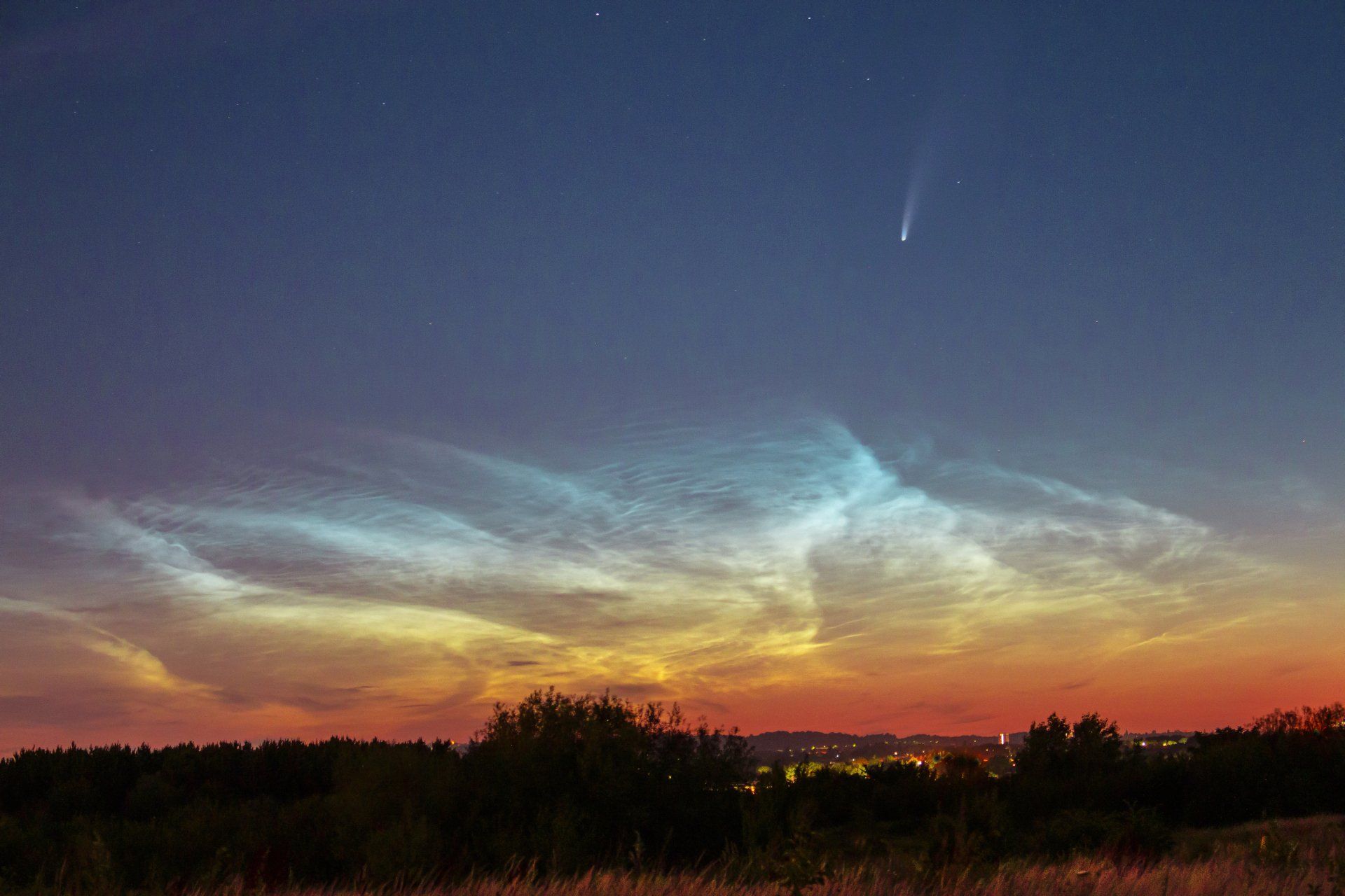 Neowise and NLC over South Hornchurch. 15 seconds ISO 800 Noctilucent Cloud are a summer treat and combined with Comet Neowise made more special. The comet will not been seen for another 6700 years.