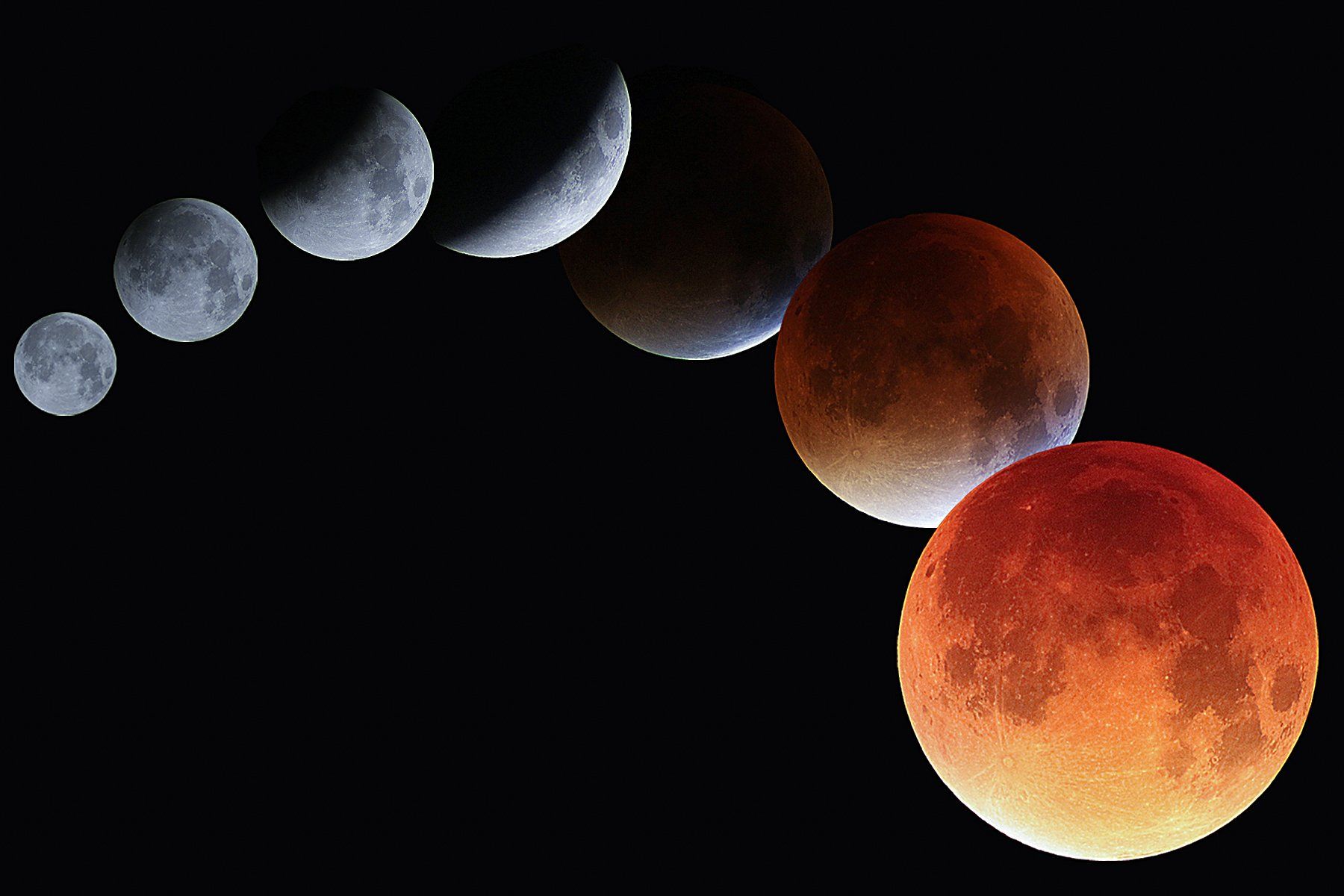 Lunar Eclipse Montage. Recent total lunar eclipse, showing highlights throughout the spectacle. Shot in Billericay Essex