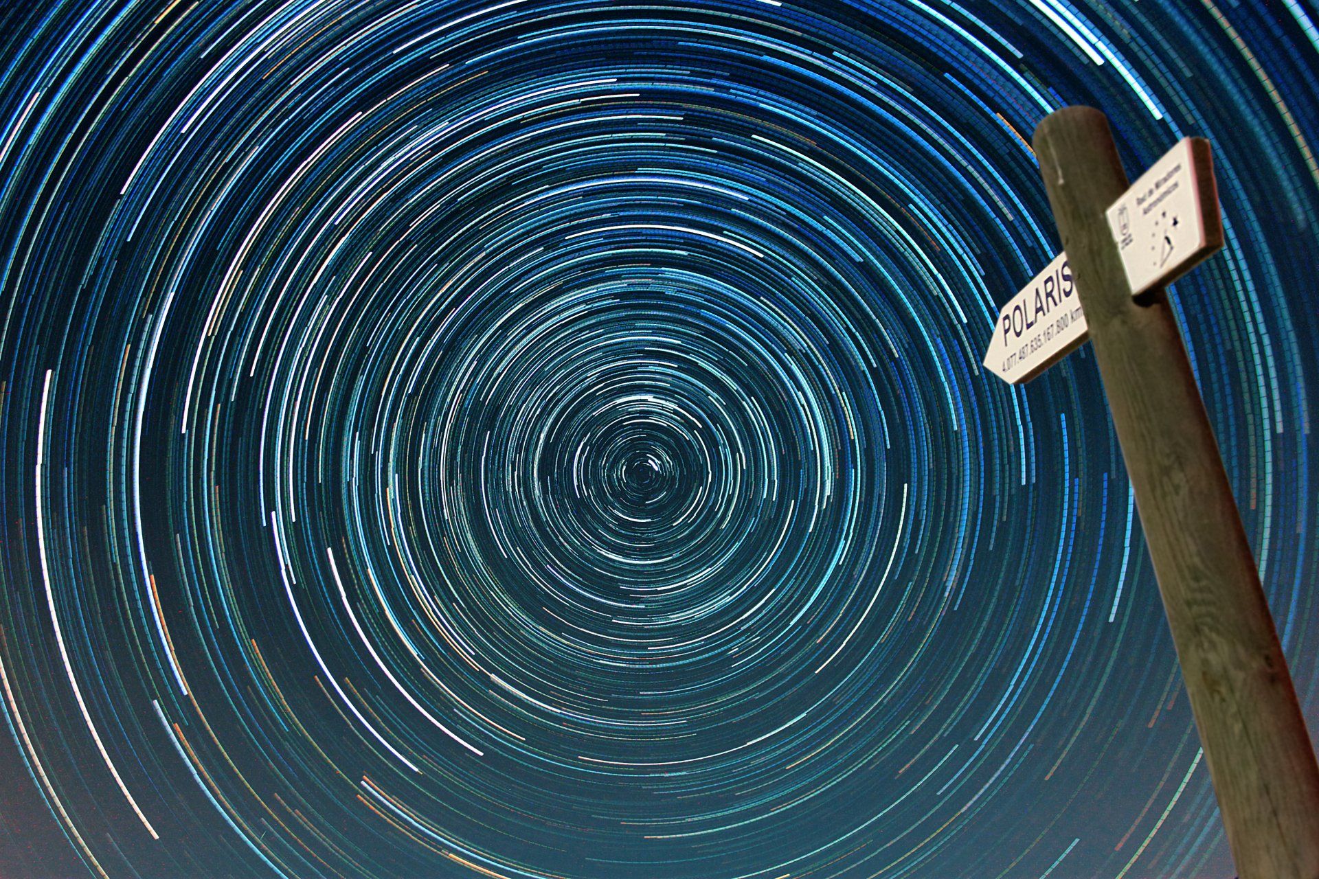 Star trails La Palma. 48 seperate, four minute shots ISO 1600 stacked to produce star trails. Without a pointer to Polaris the star field is so rich at this location that identification of the star can be quite difficult to determine.