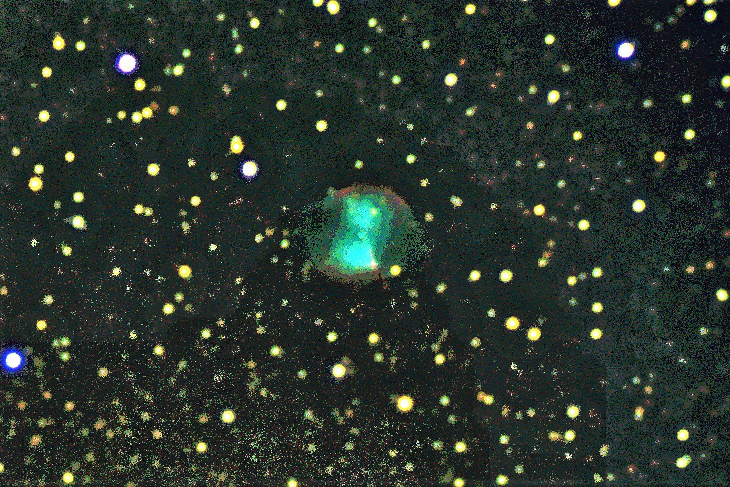 10" f5 newtonian, Canon 1000d at iso400. 17 mins exp with a deep sky filter. Eq6 telescope mount. Processed with Photostudio. 30th August 2019.