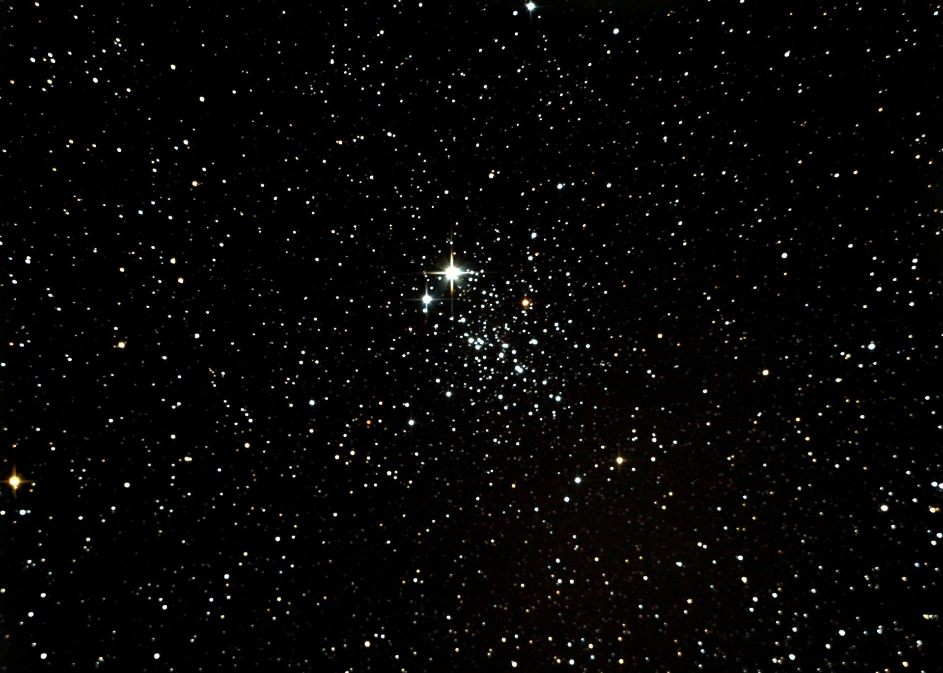 NGC457 The Owl Cluster. Taken with a 8" f5 newtonian on a Eq6 mount. Canon 1000d iso400. 15mins exposure from Latchingdon, Essex. 20th September 2020. Processed with Photostudio.