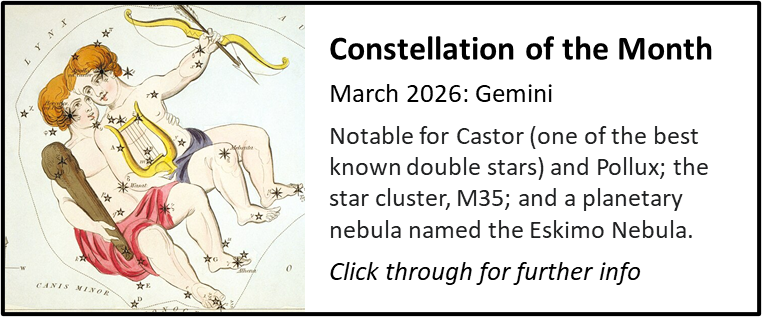 Adults: Wednesday 18 March; Young Astronomers: Thursday 2 April