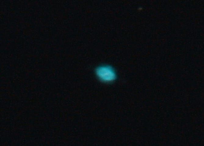 The nebula is 1 degree west of the star Nu Aquarii. The central portion measures 25″ × 17″, while the outer shell extends to 41″ × 35″. The object is on many "best of" observing lists.
