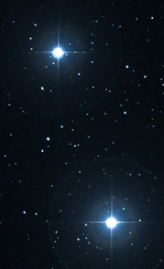 Cancer has several nice doubles. Iota Cancri is similar to Albireo, being a fairly wide yellow and blue double, which are magnitude 4.1 and 6; it is sometimes called the winter or spring Albireo. Tegmine (Zeta Cancri) [3] is a tighter pairing of two yellow stars, mag. 4.9 and 5.9. One of my favourite doubles is Phi2 Cancri [4], which is an equal pair (mag. 6.2) of yellow-white stars which are fairly tight.