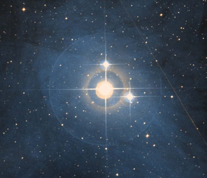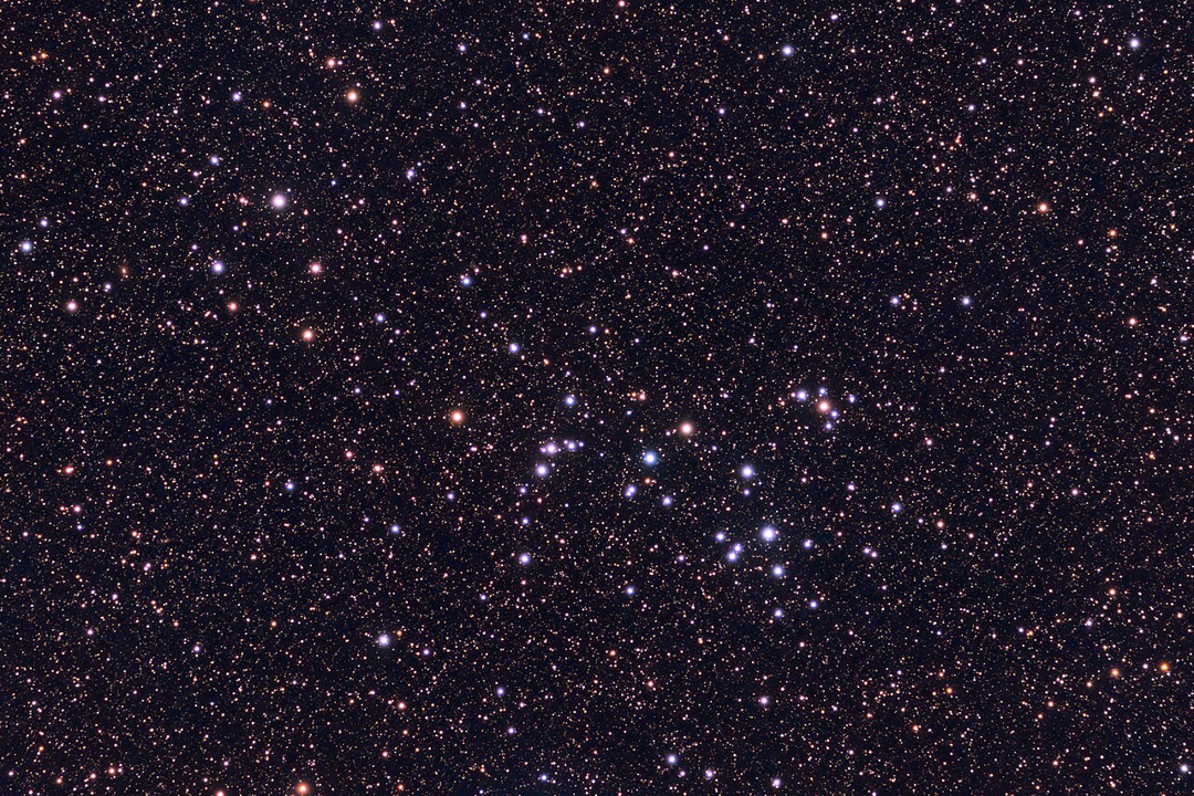 Ophiuchus also has several interesting double stars. 70 Ophiuchi [9] is near Barnard’s star. It is a binary with two orange stars (mag. 4.2 and 6.7) with a good separation. It has a short orbital period of 88 years and only has a easily resolved separation because it is so close to us (16.7 light-years). 70 Ophiuchi forms a triangle with two other stars (67 and 68 Ophiuchi) which is the lower half of the former constellation Taurus Poniatovii, named in honour of King StanisÅ‚aw II August, King of Poland and Grand Duke of Lithuania, by Marcin Odlanicki Poczobutt in 1777. Just as Poland disappeared during his reign, so has the constellation, already falling of use by the early nineteenth century although it made an appearance in Urania’s Mirror of 1825. Barnard’s star is close to the right horn of the bull, 66 Ophiuchi. 61 Ophiuchi [10], below Cebalrai, is a pair of yellow-white stars of similar brightness (mag. 6.1 and 6.5). The other two doubles are in the south of the constellation and are close to Theta Ophiuchi (mag. 3.3). 39 Ophiuchi [11] a golden yellow star (mag. 5.2) with a blue companion (mag. 6.6). Two and a half degrees further south lies 36 Ophiuchi, a binary with two equally bright golden yellow stars (mag. 5.1).