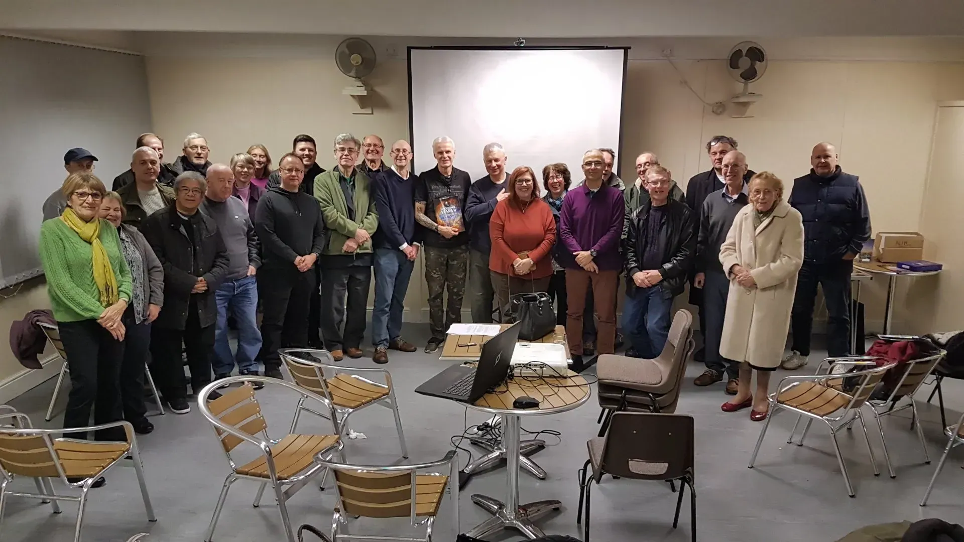 We then had a special raffle, with lots of great prizes. Next, our Chairperson, Les Jones, gave an illuminating talk about the club's formation and history, interspersed with recollections from audience members, who included some former members - among them Ian Ridgley, son of founder member and former Secretary Frances Ridgley - and regular presenter Jerry Workman (who was one of the club's very first speakers). Some in the audience helped to identify a few of the people featured in the slides.