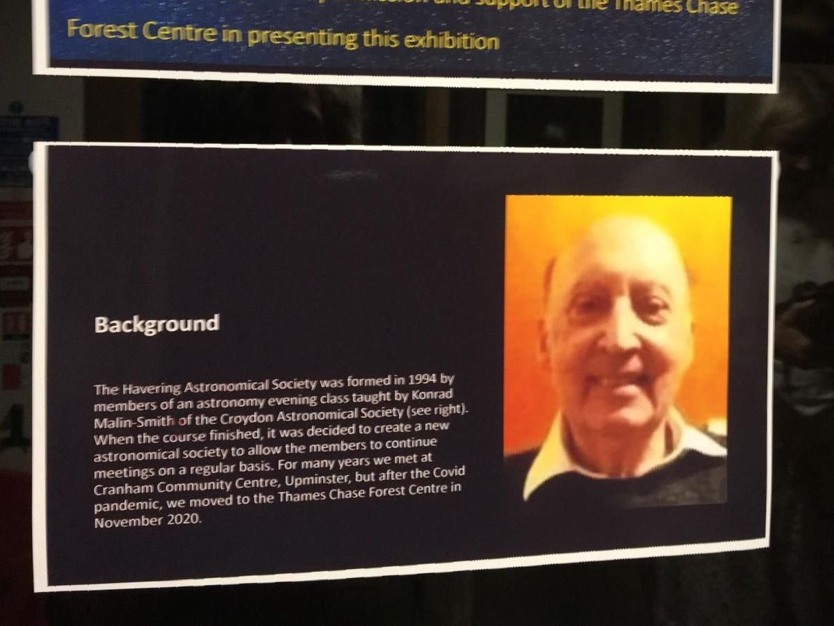 Our 30th anniversary celebration started with a pre-recorded talk by the club's inspiration, Konrad Malin-Smith (from whose evening classes on astronomy the club arose), entitled 'Harvard, Lowell, and the expansion of space' - a fascinating talk on a topic of great importance. We are very grateful to Konrad for making this recording specially for this occasion.