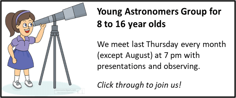 The aim of our society is to bring astronomy to the attention of our community by holding meetings, observing events, and giving educational talks to schools, scout and guide groups and other such societies.