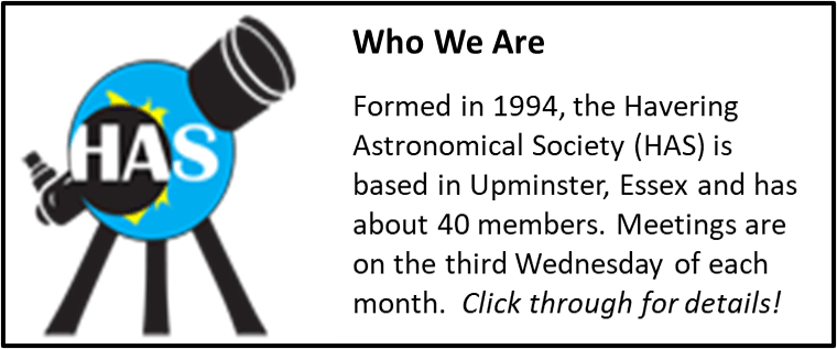 WELCOME MESSAGE FROM THE CHAIR OF THE HAVERING ASTRONOMICAL SOCIETY