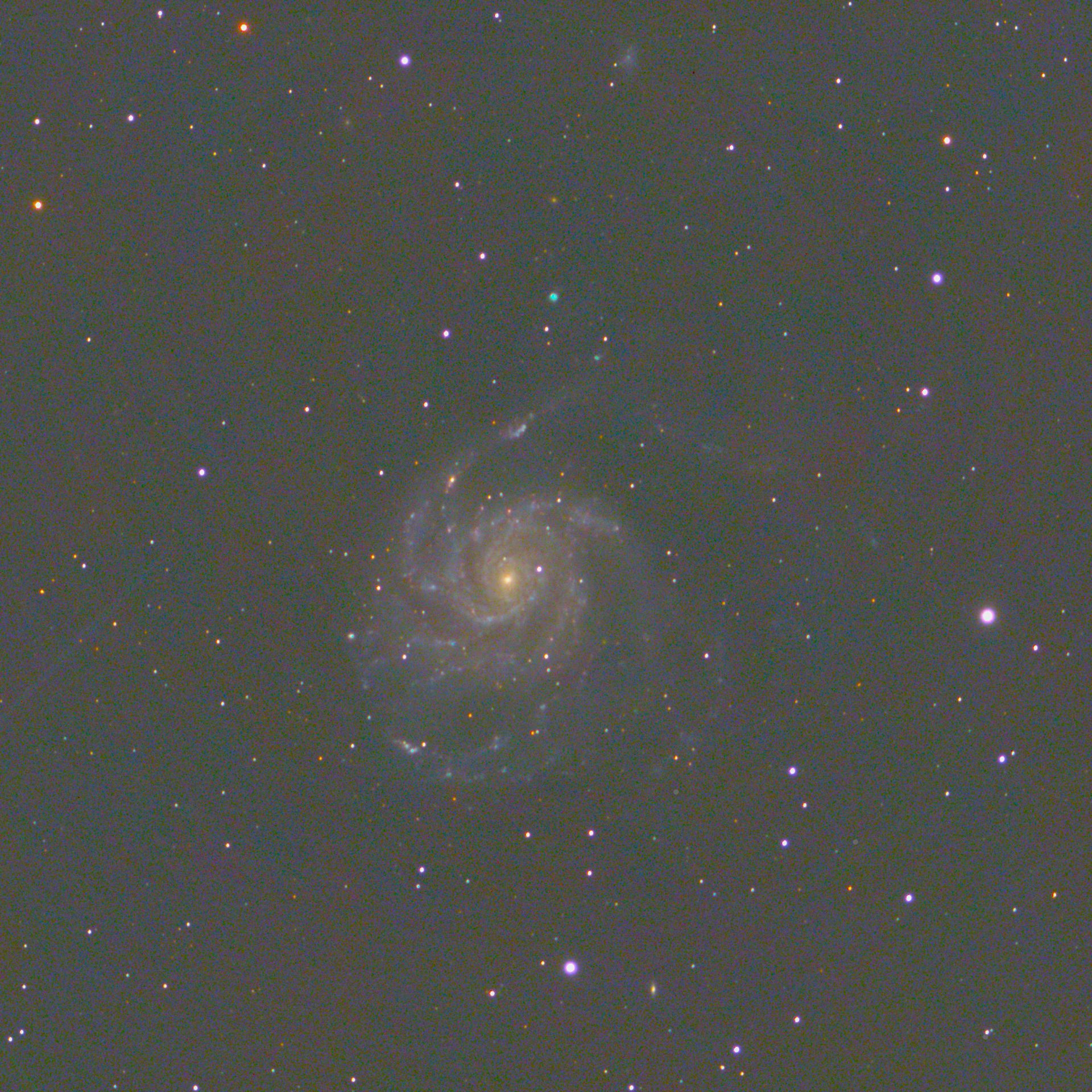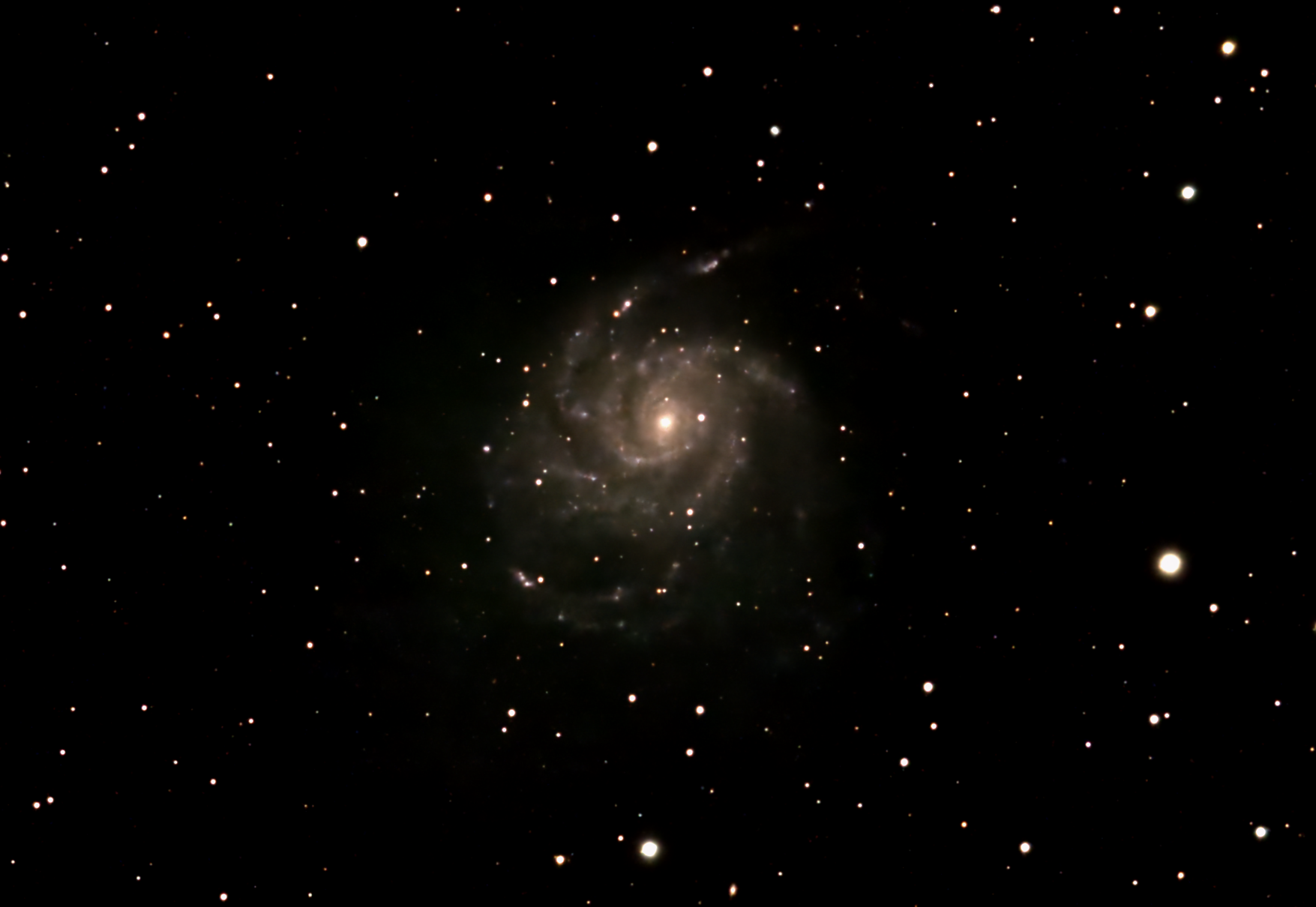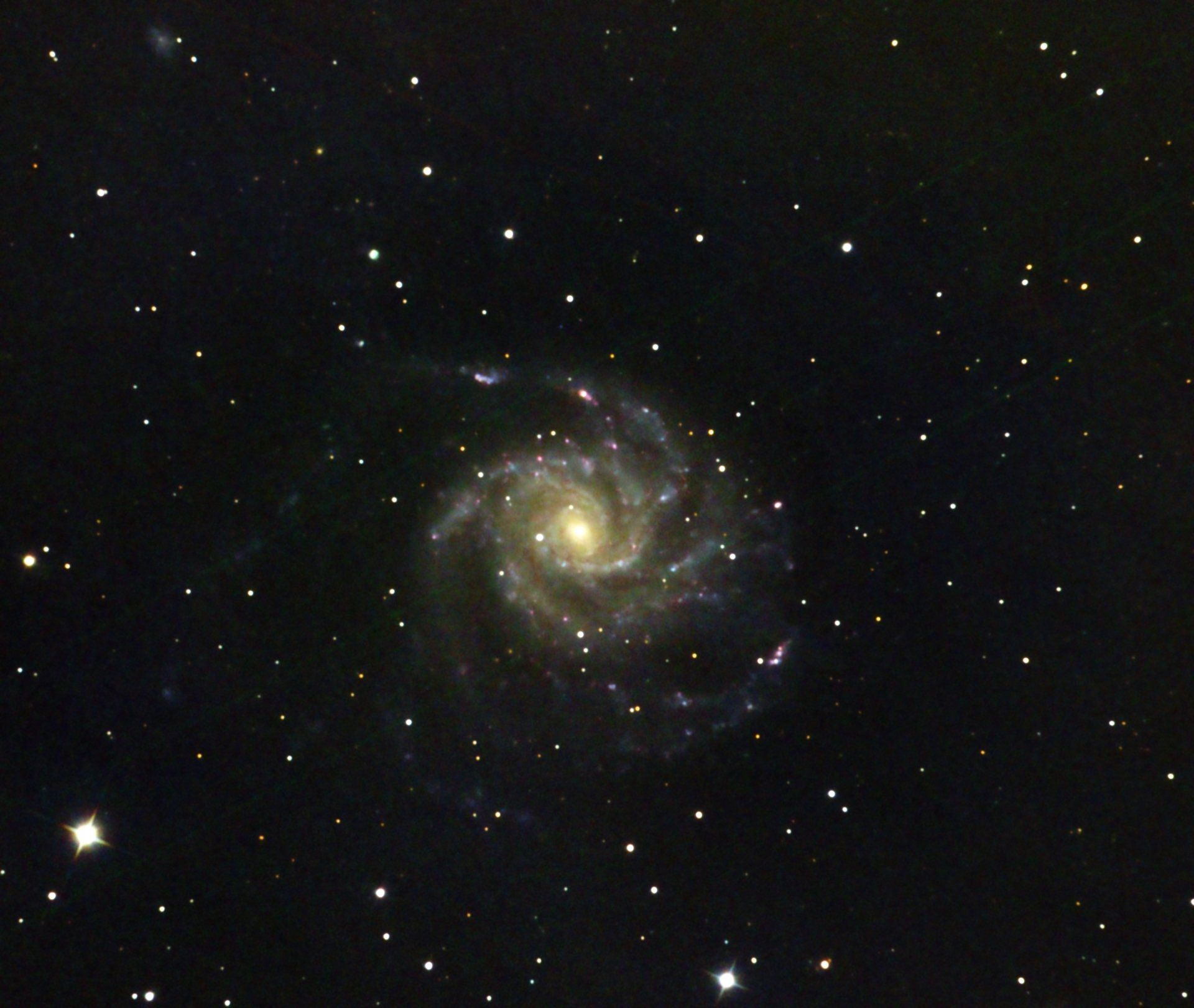 The Pinwheel Galaxy (also known as Messier 101, M101 or NGC 5457) is a face-on spiral galaxy distanced 21 million light-years (six megaparsecs) away from Earth in the constellation Ursa Major. First discovered by Pierre Méchain on March 27, 1781, it was communicated to Charles Messier who verified its position for inclusion in the Messier Catalogue as one of its final entries.