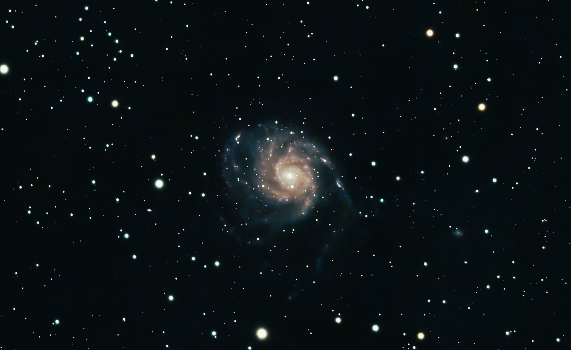 On February 28, 2006, NASA and the European Space Agency released a very detailed image of the Pinwheel Galaxy, which was the largest and most detailed image of a galaxy by Hubble Space Telescope at the time. The image was composed of 51 individual exposures, plus some extra ground-based photos.