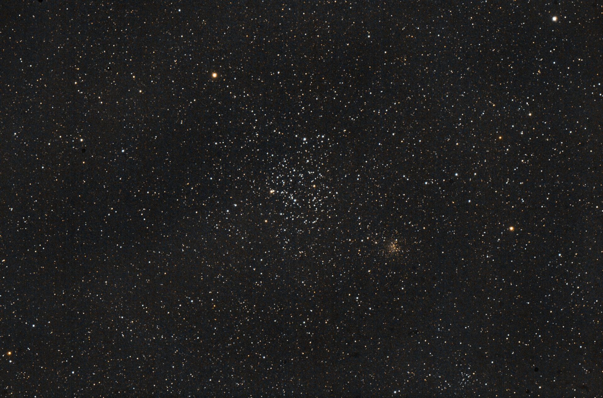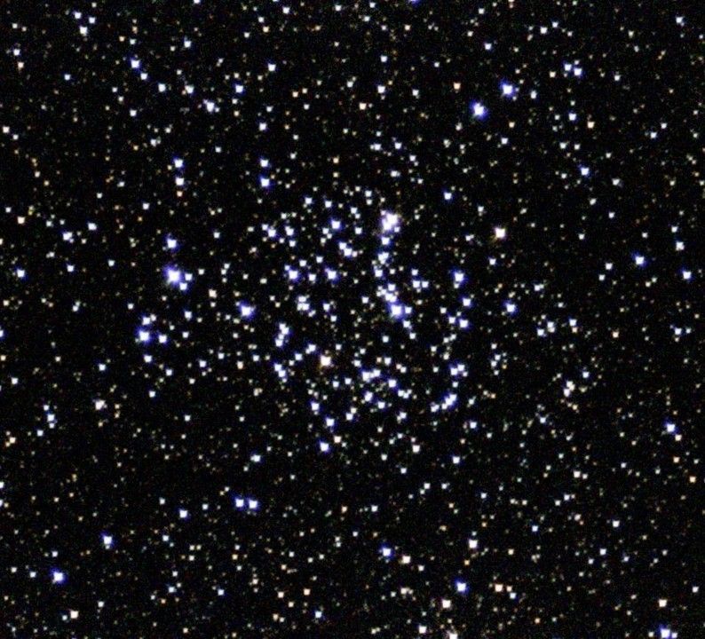 Messier 35 or M35, also known as NGC 2168, is an open cluster of stars in the northern constellation of Gemini. It was discovered by Philippe Loys de Chéseaux around 1745 and independently discovered by John Bevis before 1750. The cluster is scattered over an area of the sky almost the size of the full moon and is located 3,870 light-years (1,186 parsecs) from Earth. The compact open cluster NGC 2158 lies directly southwest of M35.