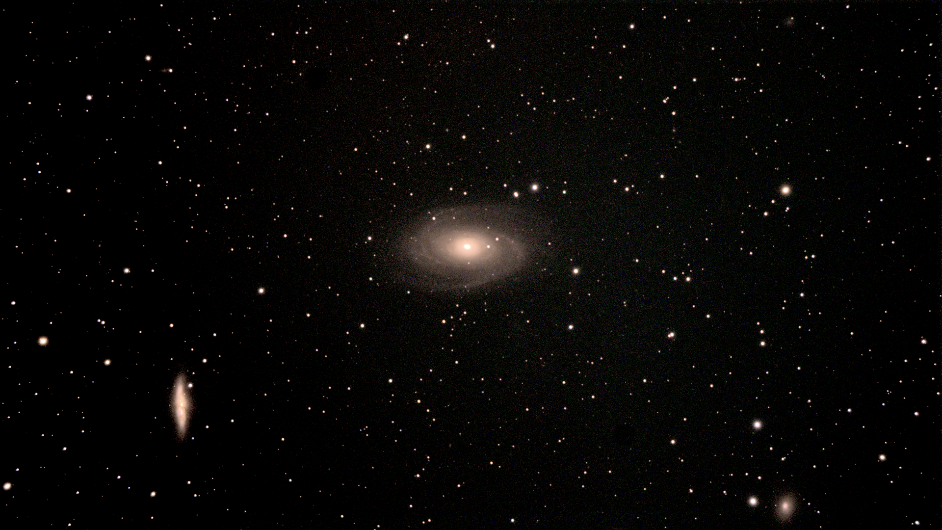 Messier 81 (also known as NGC 3031 or Bode's Galaxy) is a spiral galaxy about 12 million light-years away, with at diameter of 90,000 light years, about half the size of the Milky Way, in the constellation Ursa Major. Due to its proximity to Earth, large size, and active galactic nucleus (which harbors a 70 million M☉ supermassive black hole), Messier 81 has been studied extensively by professional astronomers. The galaxy's large size and relatively high brightness also makes it a popular target for amateur astronomers.