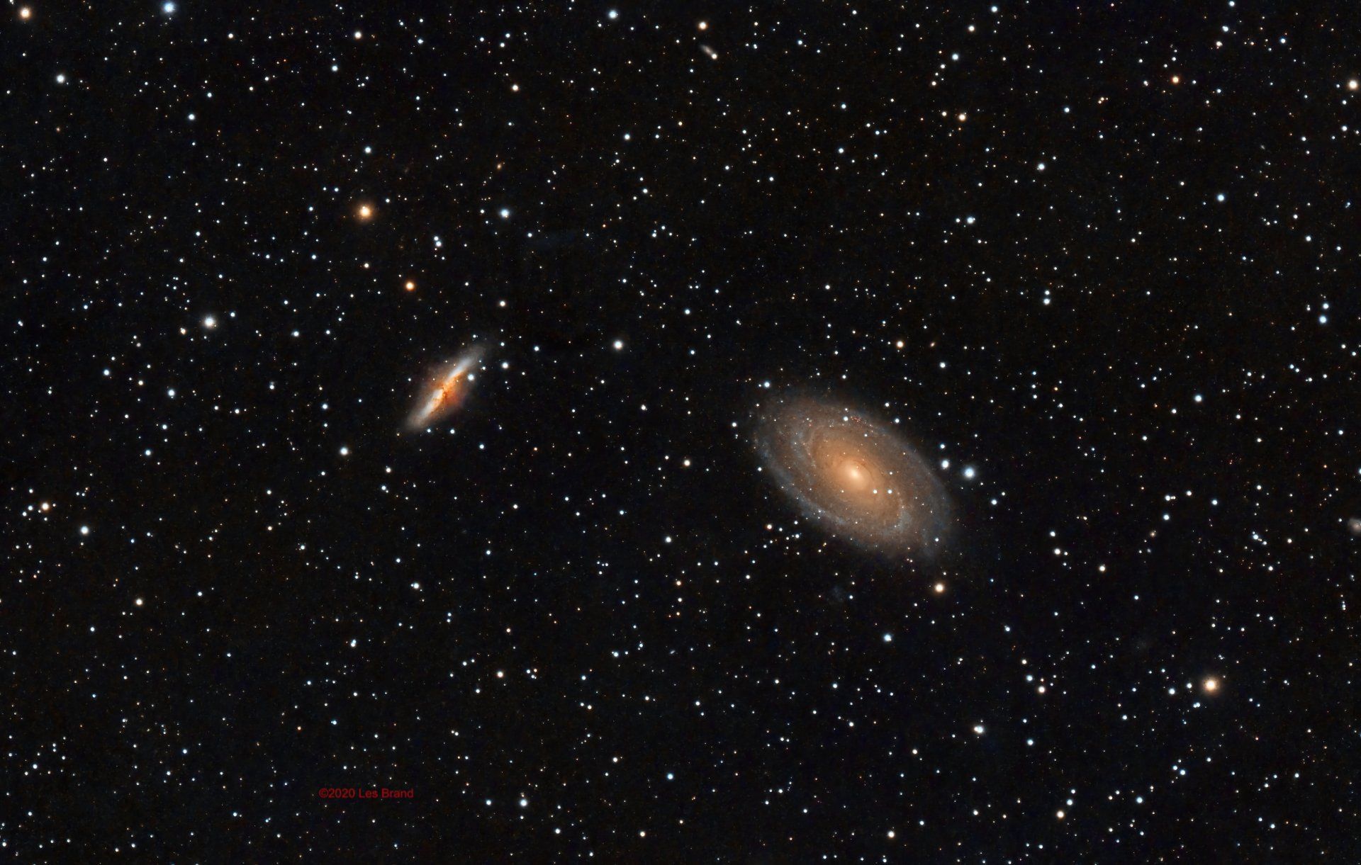 M82 on the left and M81 on the right. Image by Les Brand